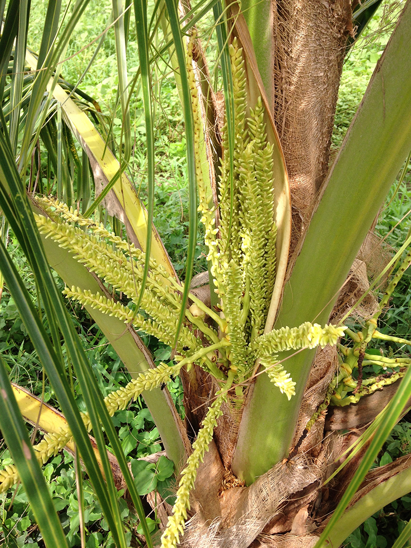 The coconut pod has grown had coconut pollen can now be seen – Unique